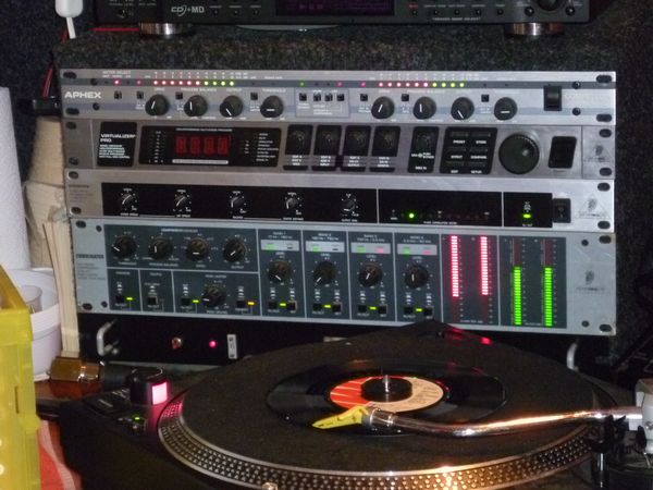 Voor het audio gedeelte stond er de welbekende Behringer mdx8000 Combinator met daaraan gekoppeld een Behringer edison en een Aphex Compellor 320 A.