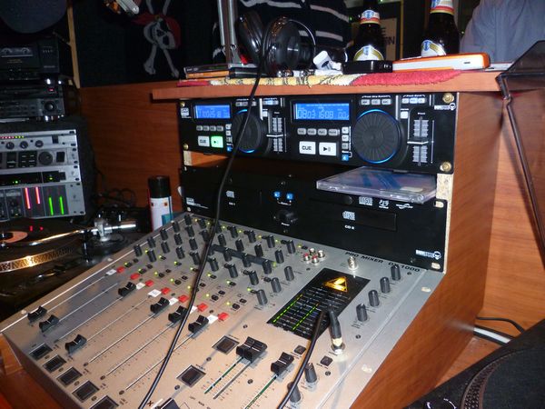 Een stuurzender van het merk Rvr afgesteld op de 88.3 MHz, werd gebruikt voor de 2kw Elenos eindtrap, ongeveer 2200 watt was het vermogen.