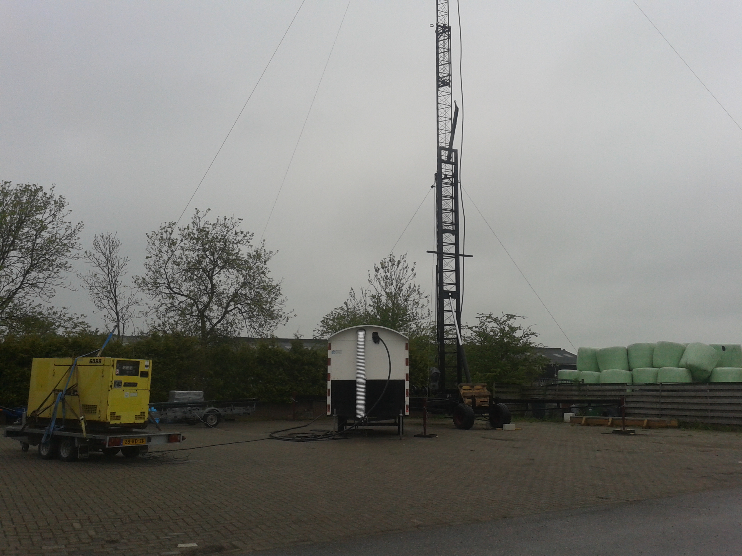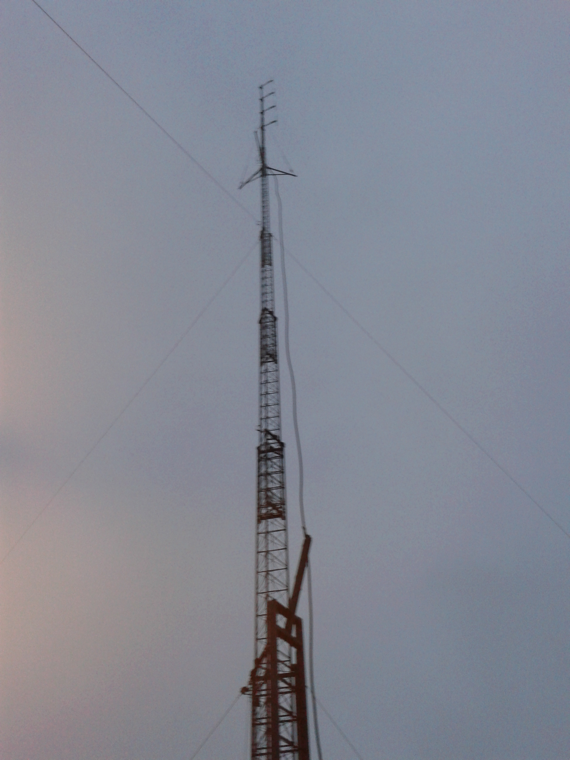 De zendmast was een dikke 50 meter met 4 gouden breedbanders CTE.