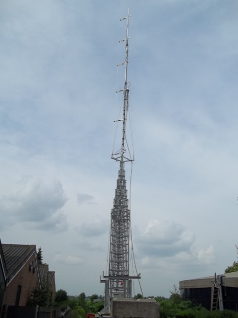 Bij de mast een 3 gigahertz verbinding, zodoende kon de gemeente ook niet het feest stil leggen.